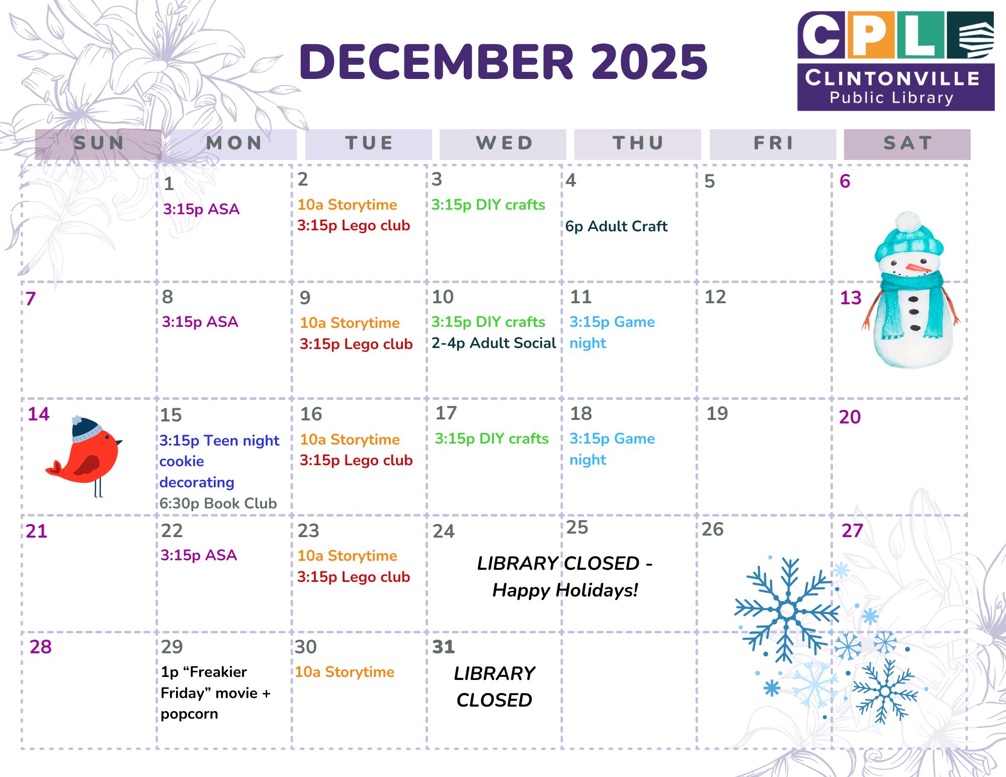 December Programming Calendar